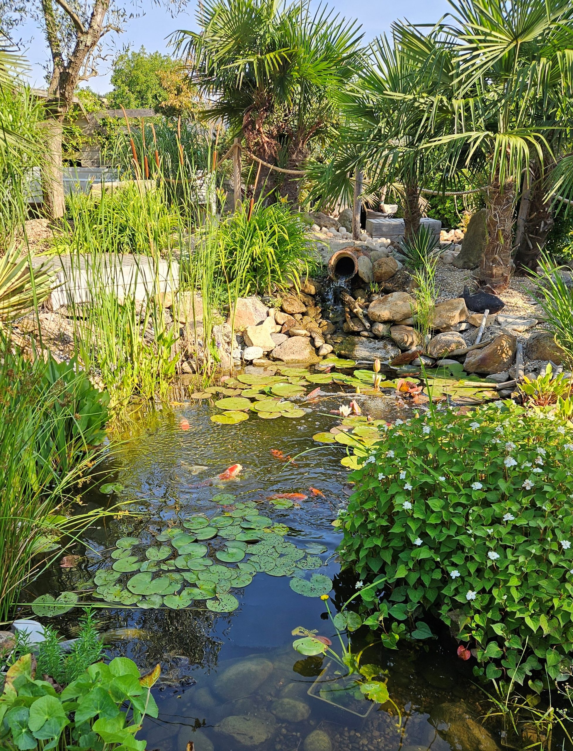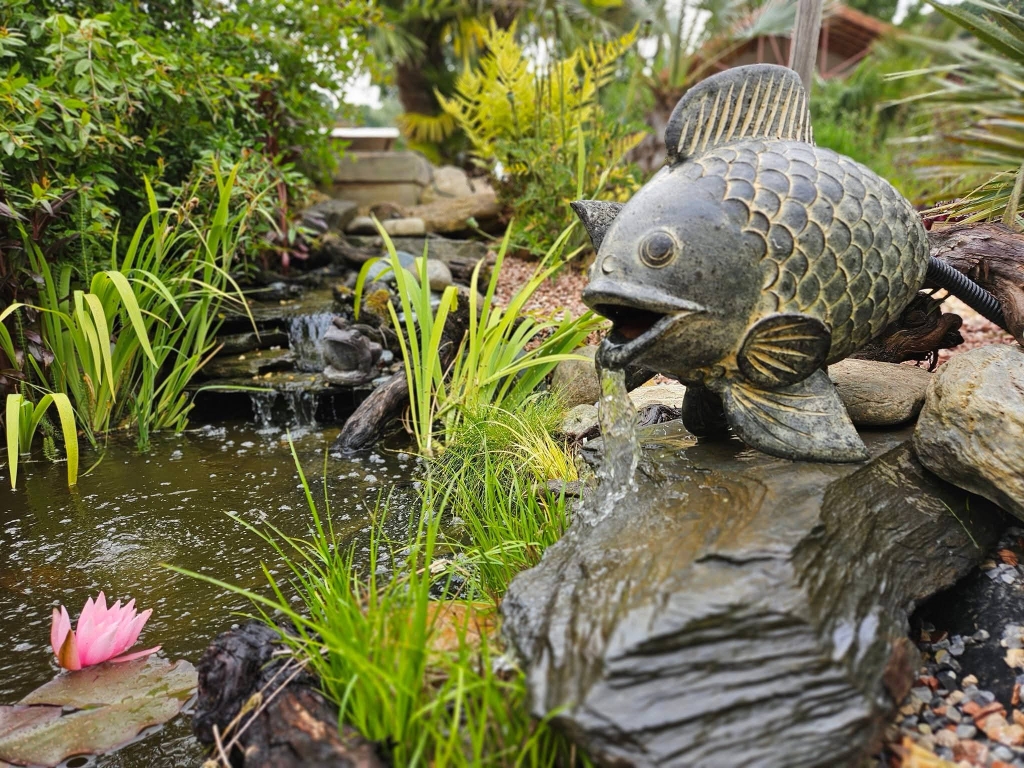 Profitez d’un espace appaisant, raffraichissant d’une cascade, jets d’eau, plantes aquatiques, et poissons exotiques.